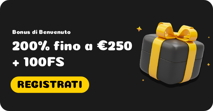 | Bonus primo deposito | 200 percento fino a 250 euro + 100 free spins | 40x bonus | 7 giorni | 250 euro |